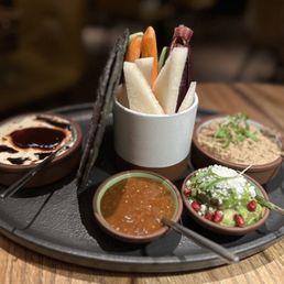 Fish tacos were AMAZING!! Mezze was okay, guac was delicious but the hummus was not good. The table next to us also hardly touched their hummus. Nice light lunch. We'd come back for other items for sure! But no to the hummus ever again. Service was great. Ambiance was nice. Prices were reasonable. They do automatically charge an 18% gratuity fee in case you didn't know.